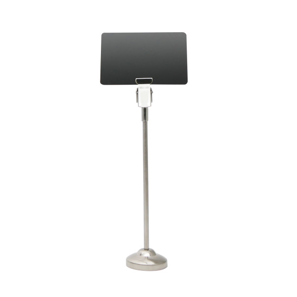 - Acier inoxydable (tige et pince) + alliage zinc (socle rond)