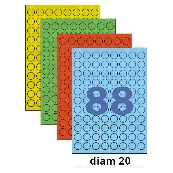 Etiquettes en planche papier couleur diamètre 20 mm - 88 poses