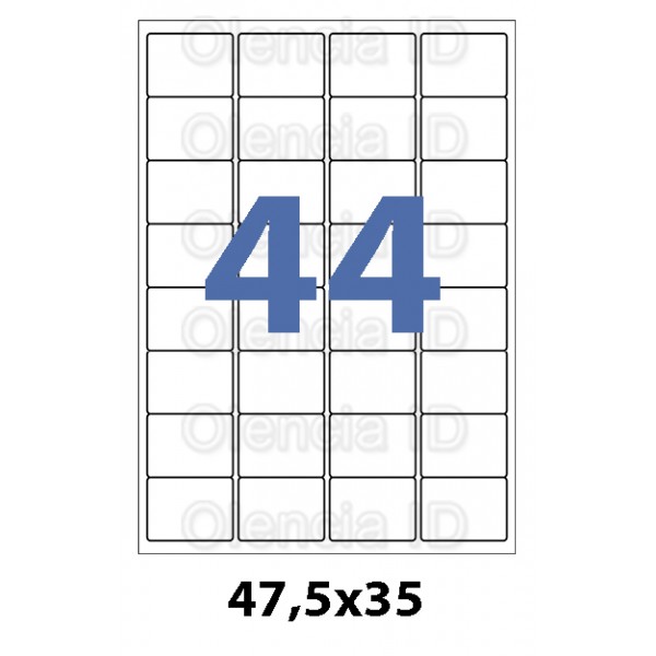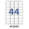 Etiquettes en planche 47,5x35 mm Jet/laser - adhésif permanent 32 poses