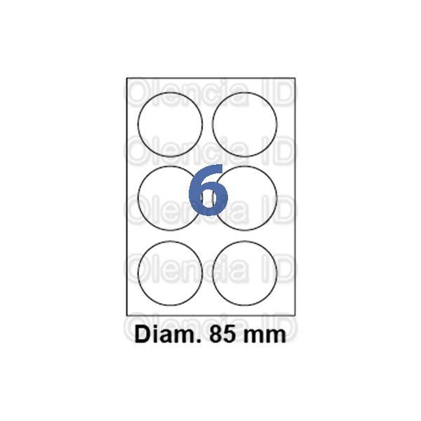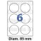 Etiquettes en planche jet/laser Rondes Ø 85 mm 6 poses