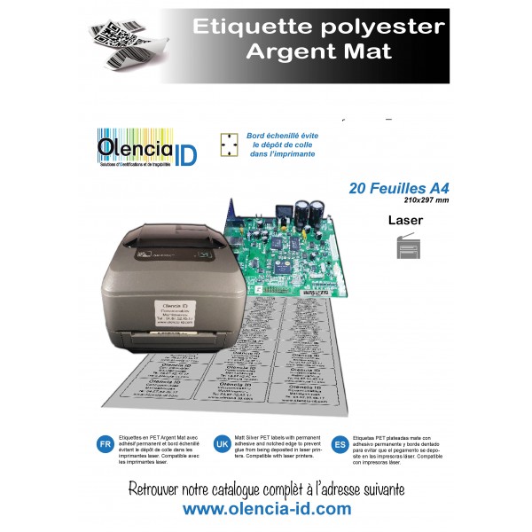 Etiquettes en planche 210x148 mm PET Argent Mat - 2 poses